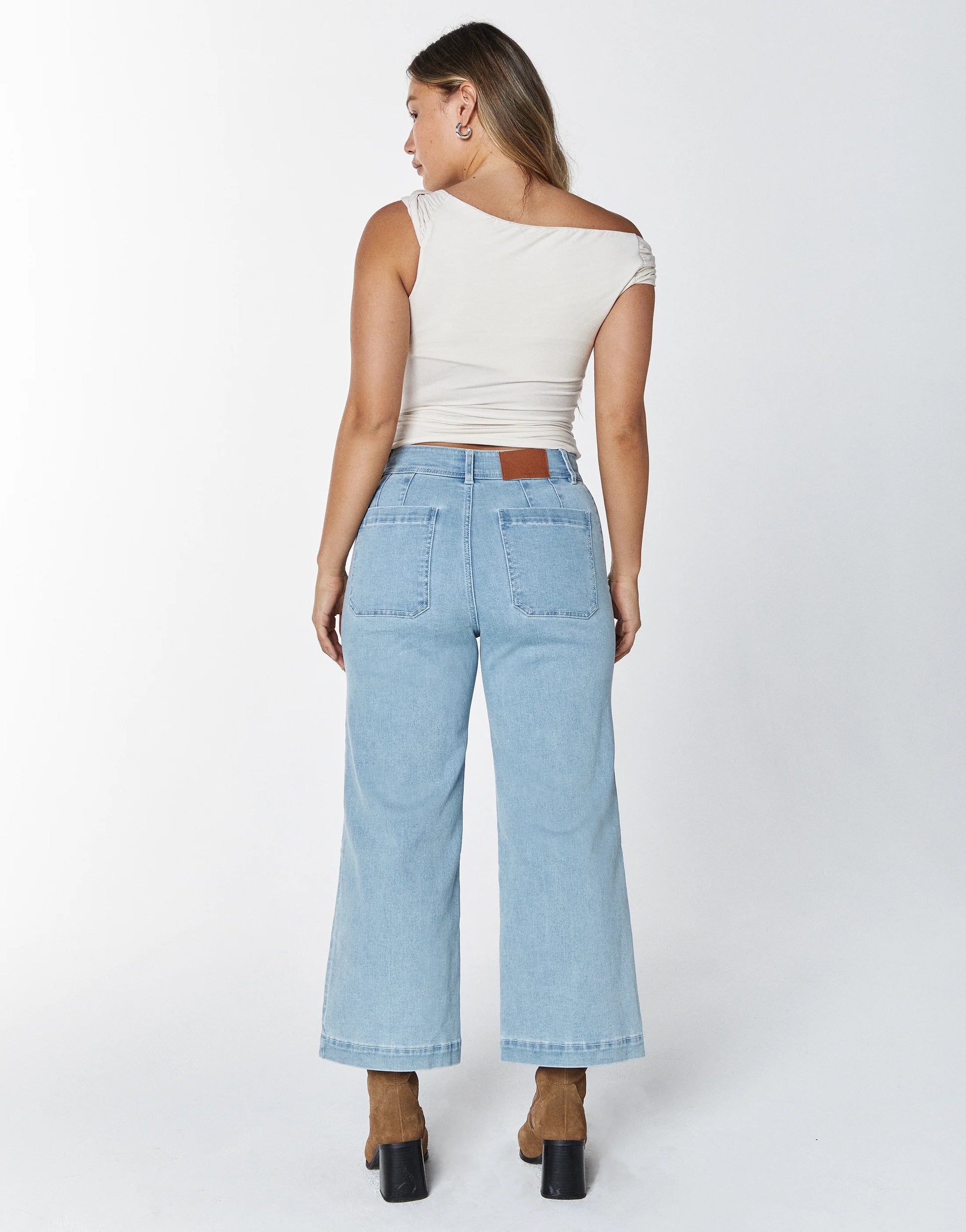 Gemma, our fan favorite high-rise cropped wide leg pant. Hugging at your waist and hips, our comfort stretch twill gives just the right amount of movement. Featuring double sew on buttons, zip fly closure and tonal stitching.